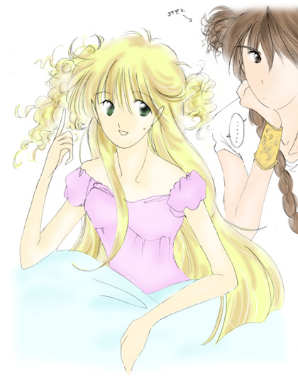 寝ぼけ眼をこすりながらジャンは先に起きたランジェの髪をなでる